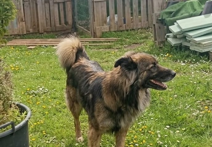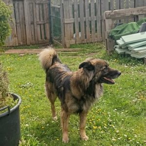 Es un perro tranquilo, se lleva bien con sus compañeros de chenil y no es ladrador.