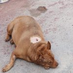 Es mestiza y de tamaño mediana. Se lleva muy bien con los perros.