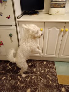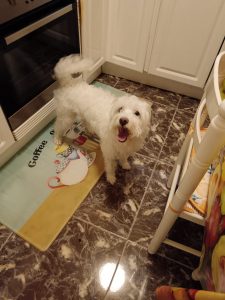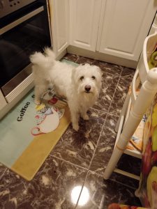 Ahora Milú ha quedado solito, siempre se asoma a la puerta esperando ver entrar a su dueño.