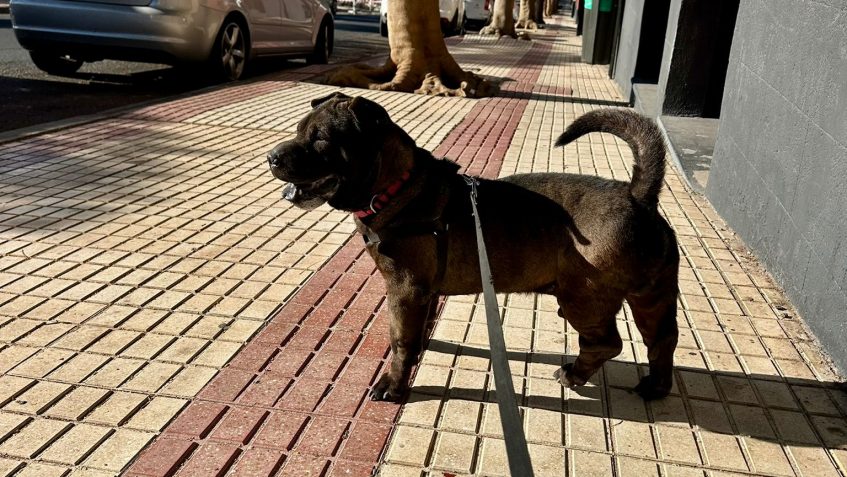 Pumba es un perrito macho de 3 años. Es de tamaño medianito tirando a pequeño, muy bueno y noble.