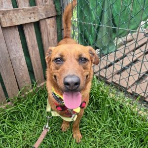 Llegó al refugio hace 10 meses y es una perra muy tranquila en el chenil, ha descubierto lo bonito que es ir de paseo y sale muy, muy emocionada y feliz.