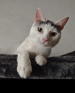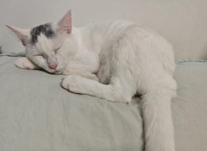 Bamba es una gatita hembra de 1 año y medio al igual que su hermano es una mimosa, también curiosa y muy alegre.